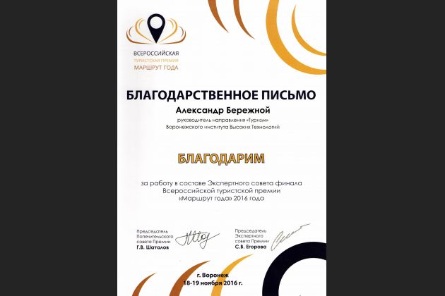 Профессор ВИВТ А. В. Бережной вошел в состав экспертного совета III Всероссийской туристской премии «Маршрут года».