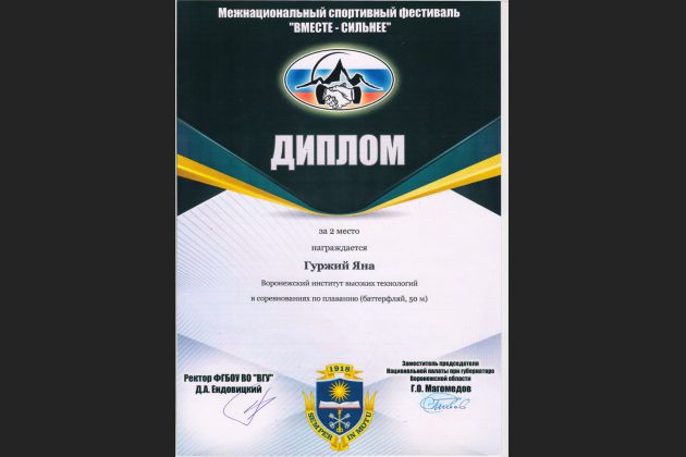 Студенты ВИВТ приняли участие в межнациональном образовательном культурно-спортивном фестивале «Вместе – сильнее!» Мероприятие прошло 15 декабря в бассейне ВГУ.