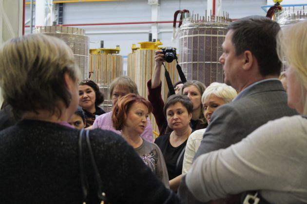 Экскурсию для преподавателей провел директор по производству Андрей Савин. Он подробно рассказал гостям о производстве трансформаторов и показал изоляционные участки, где происходит сам рабочий процесс.