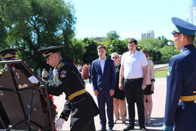 22 июня студенты ВИВТ и волонтеры Центра Гражданской Взаимопомощи приняли участие в торжественно-траурной церемонии возложения венков к могиле Неизвестного солдата на площади Победы, посвященной Дню памяти и скорби.