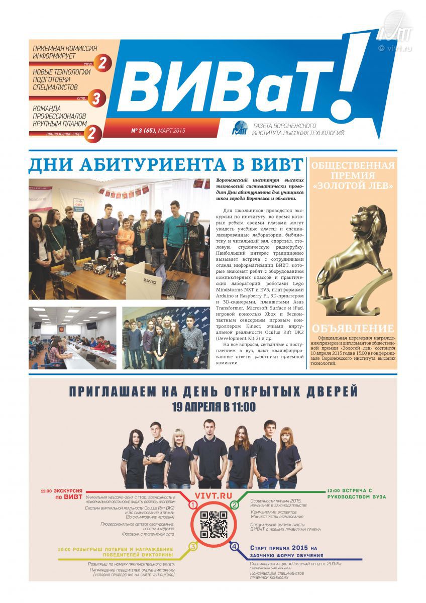 26 марта в Воронежском институте высоких технологий состоялась церемония награждения студентов, которые по итогам осеннего семестра 2014-2015 учебного года отлично учились, достигли успехов в науке, принимали активное участие в жизни вуза и различных добровольческих мероприятиях.